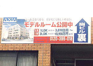 大きな壁面を余すことなく目立たせるサイン。ネオンや電飾を取り付けることにより、夜間も効果バツグン。