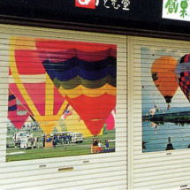 店舗や御社のシャッターに、彩り鮮やかなイラストや広告をアピール。